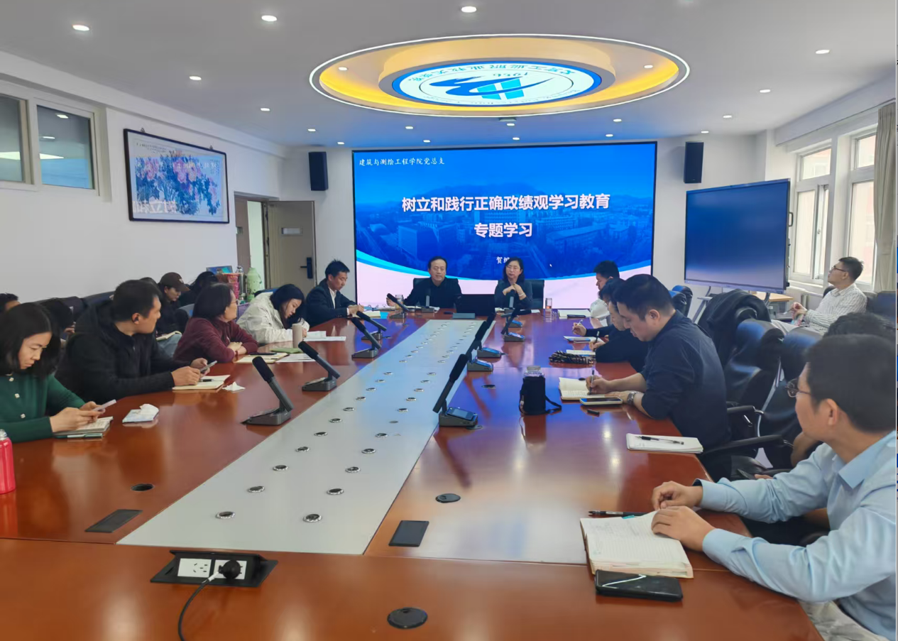 2026年3月13日下午,建筑与测绘工程学院党总支在善技楼314召开树立和践行正确政绩观学习教育动员部署会,组织全体教职工开展专题政治理论学习。会议由党总支书记贺继伟主持。