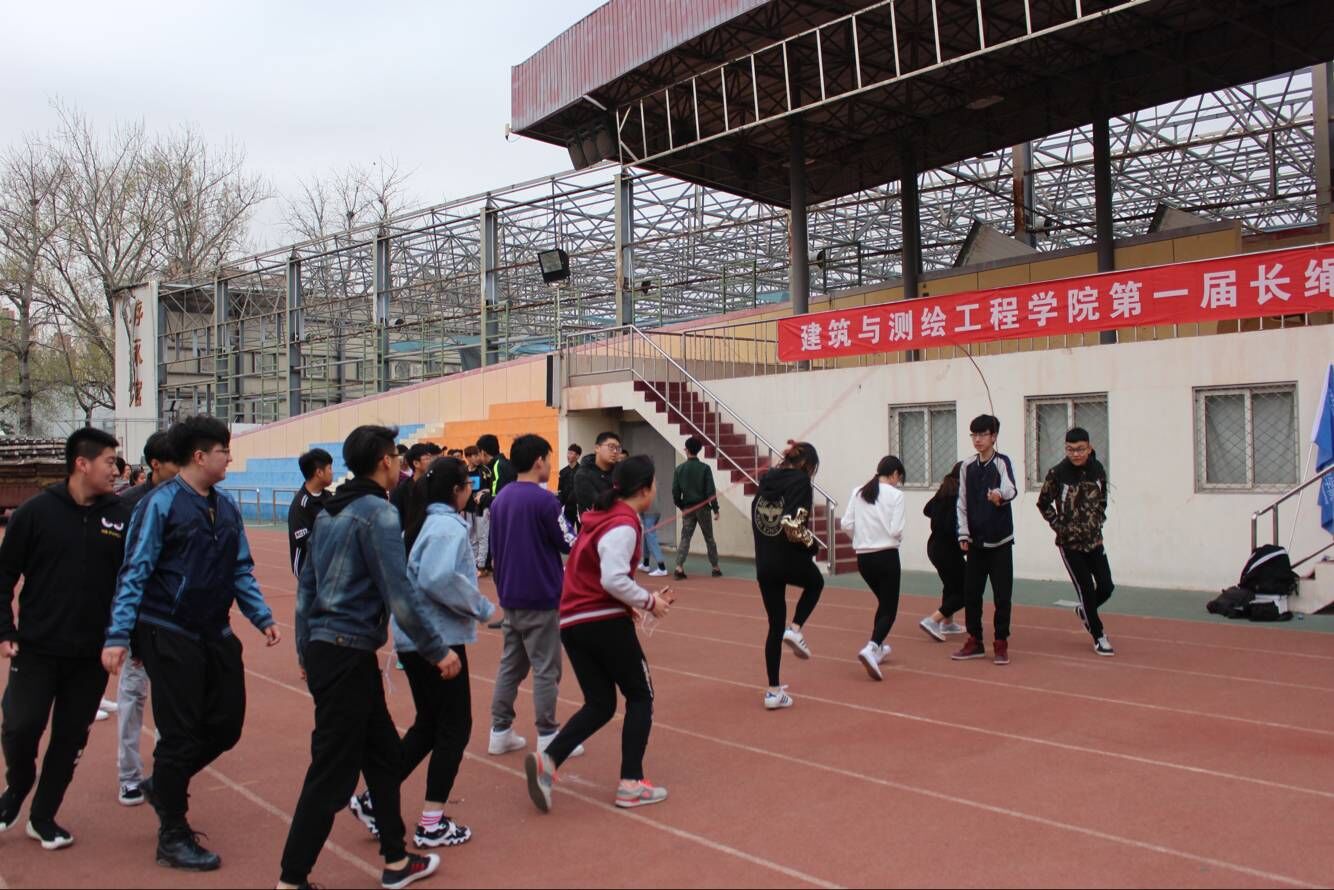 为丰富学生课余生活,提高学生身体素质,培养学生团结合作的体育精神,4月3日中午12时,建筑与测绘工程学院在操场主席台前举行了第一届长绳比赛。