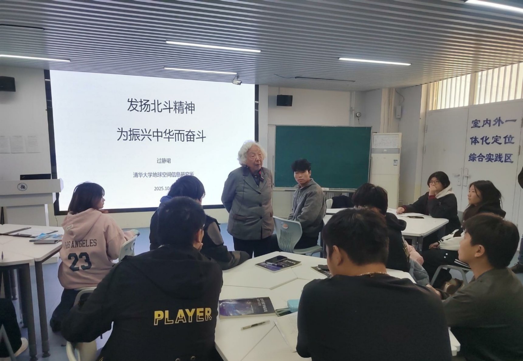 在系统讲解北斗技术突破后,过教授进一步从精神层面升华主题——以“北斗精神”凝聚民族创新力量。过教授深情阐释了“自主创新、开放融合、万众一心、追求卓越”的北斗精神,并结合研发历程解读了其中“艰苦奋斗、团结协作”的实践内涵。她勉励青年学子:“我们正处在中华民族伟大复兴的时代,青少年是国家和民族的未来。青年一代有理想、有担当,国家就有前途,民族就有希望!”她寄语同学们将个人发展融入国家战略需求,号召大家发扬北斗精神,为振兴中华而奋斗。