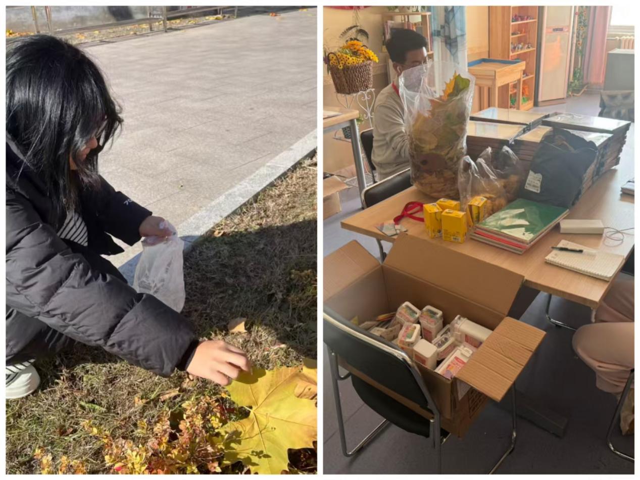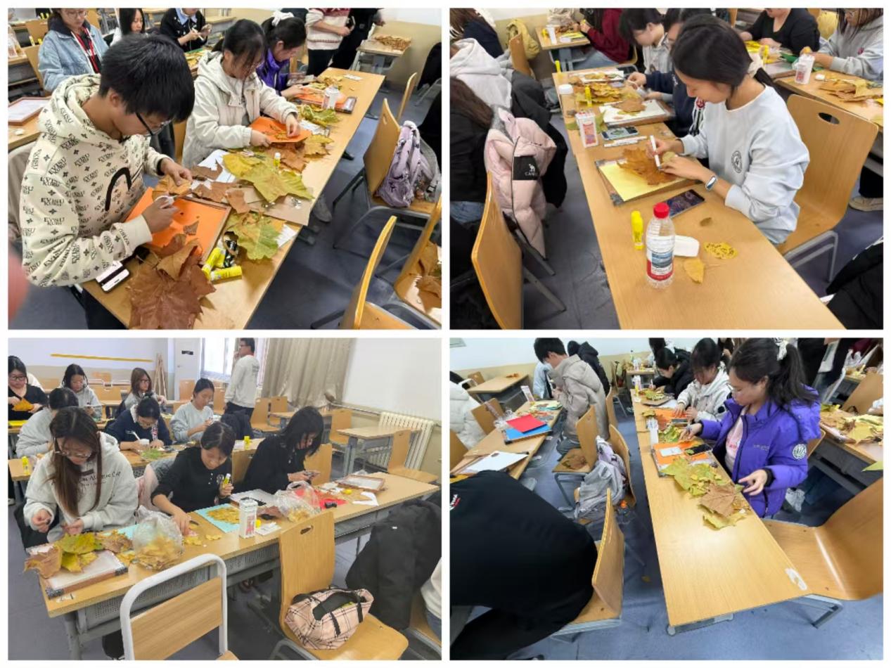 本次活动由“筑梦润心 心灵驿站”统筹策划。筹备工作于两周前启动,志愿者团队系统采集了银杏、梧桐、枫叶等多样落叶,整理形成“秋叶素材包”;同时配备环保卡纸、防水绘图工具及专业塑封设备,从物料准备到流程设计均体现心理育人理念,致力于为学生营造沉浸式、支持性的创作环境。